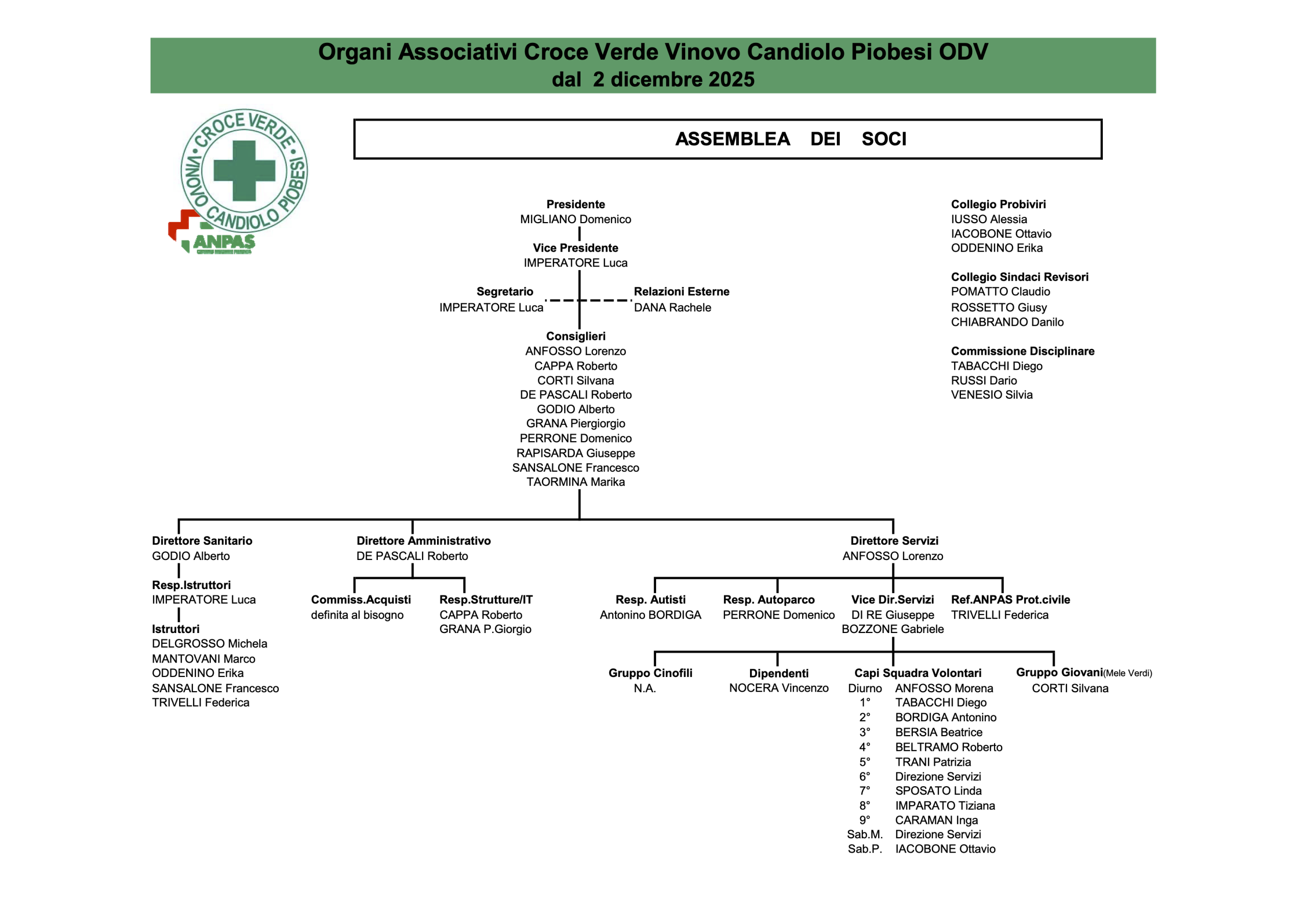 Organigramma della nostra sezione di Vinovo